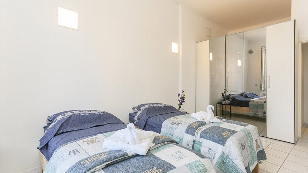 - It has two bedrooms. Each room has 2 single beds / double bed, large wardrobes and bedside tables.